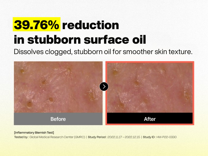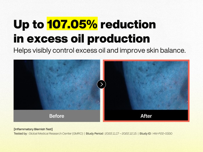 A: Our product has been clinically proven to regulate sebum secretion within 14 days through a clinical trial evaluating daily sebum secretion control (temporary). While noticeable effects can be observed within 14 days, continued use for a minimum of two weeks or more may yield even greater results. However, individual differences in skin condition and type may result in variations in efficacy.